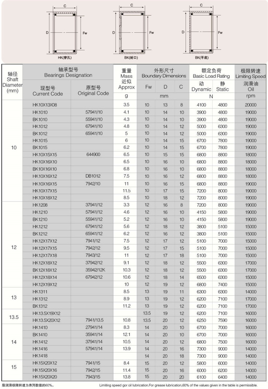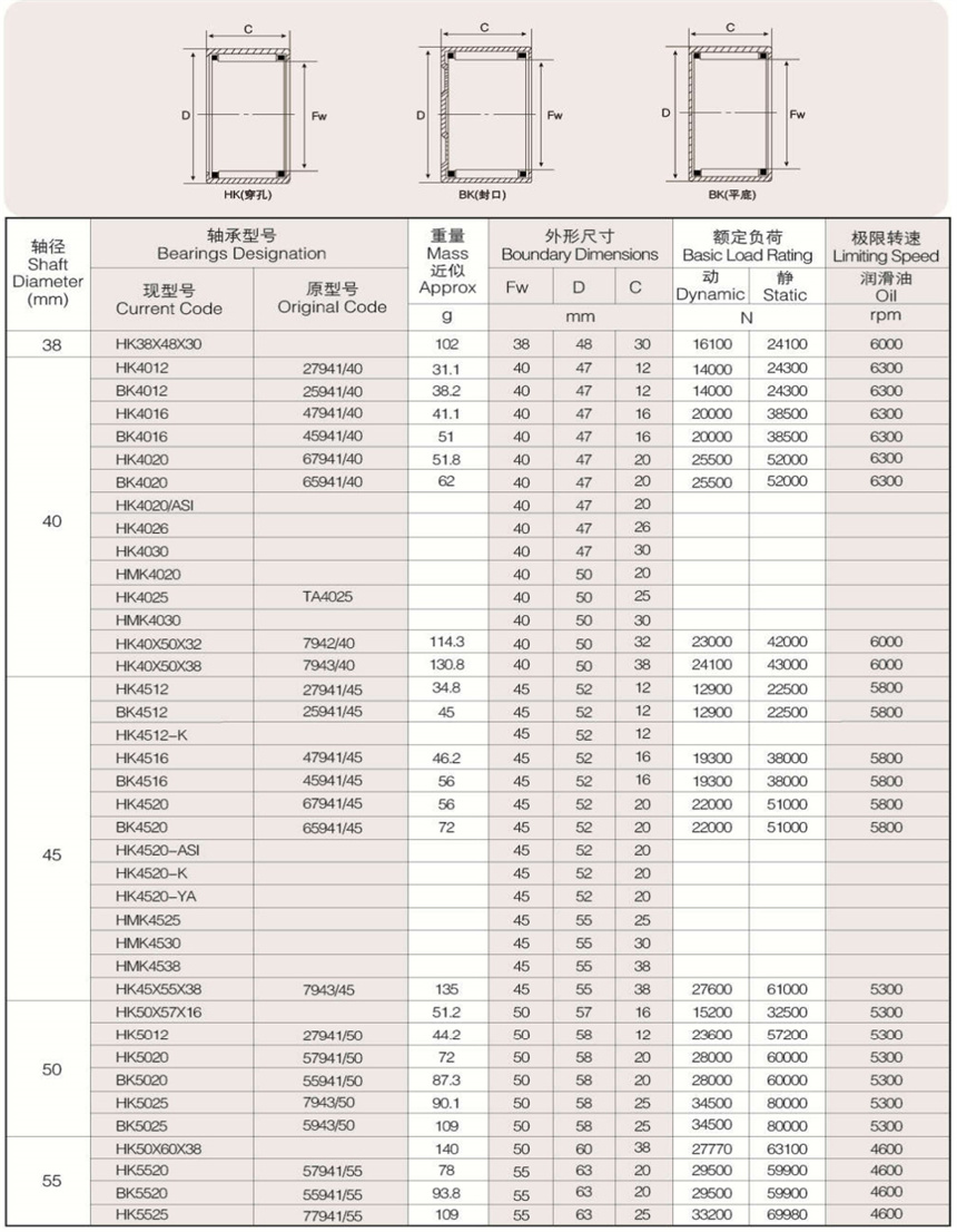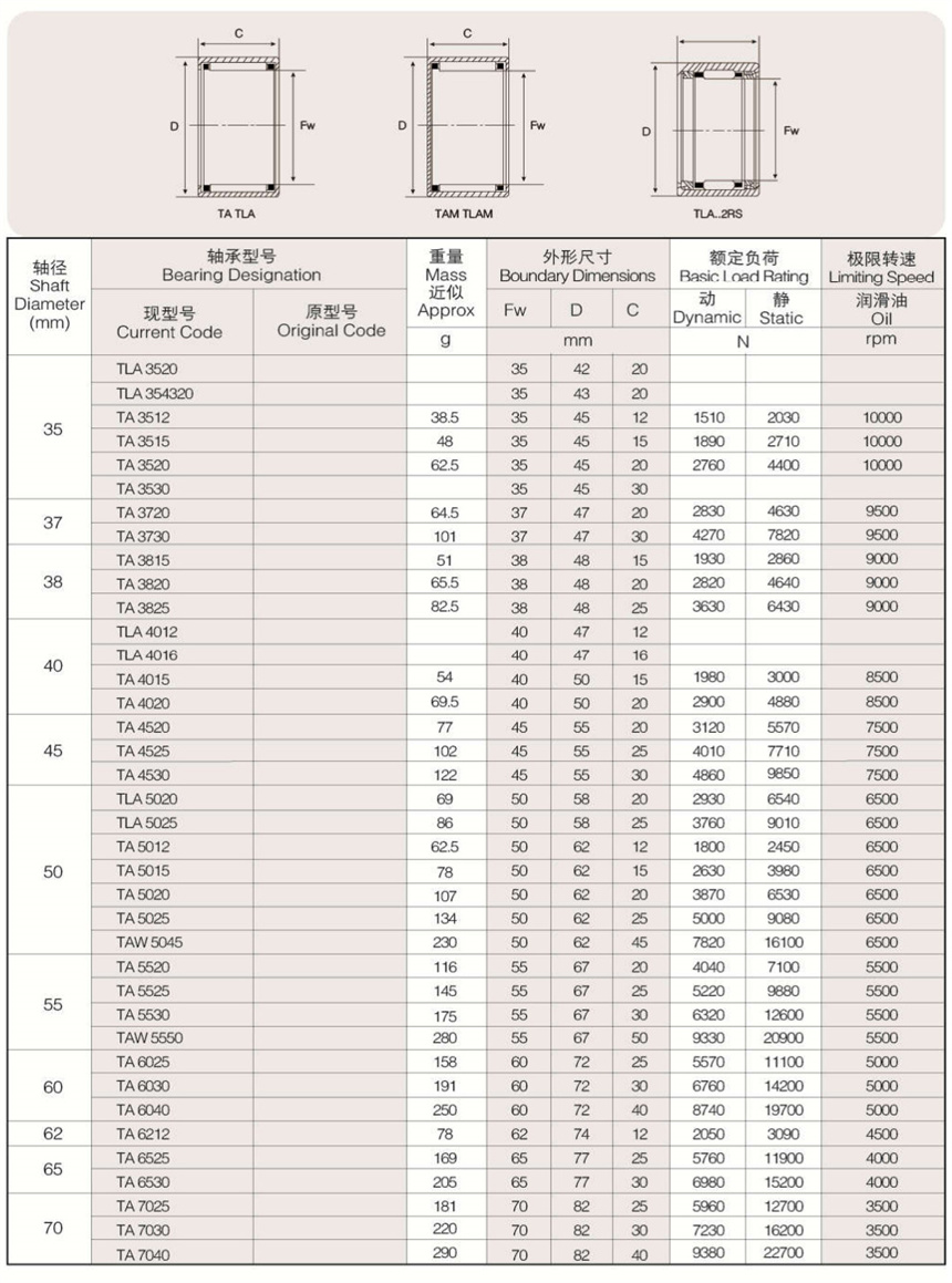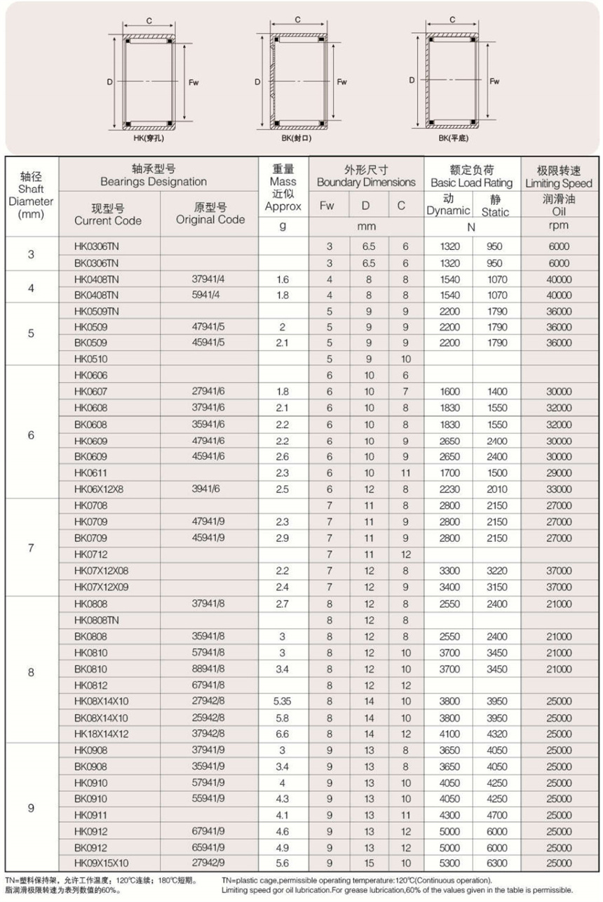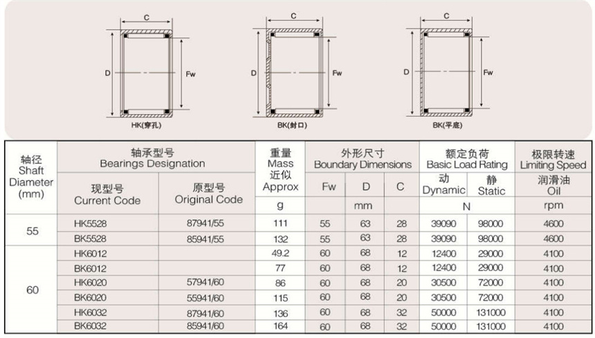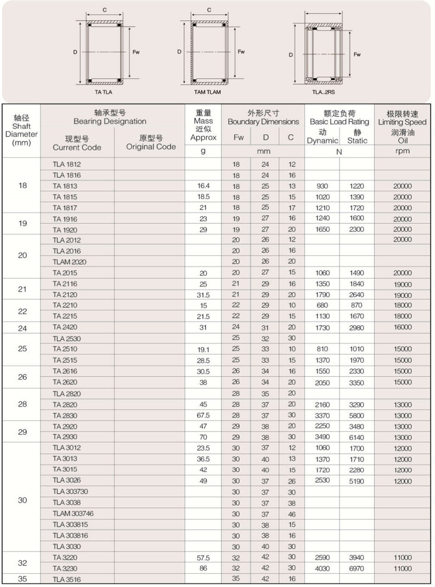 可提供樣本樣品中所列標(biāo)準(zhǔn)和非標(biāo)準(zhǔn)公制尺寸。英制系列沖壓外圈滾針軸承以及外圈有油孔,雙列滾針、 尼龍保持架,有內(nèi)圈、有密封圈等有特殊要求(訂貨時(shí)有特殊技術(shù)要求)高精度的沖壓外圈滾針軸承。
