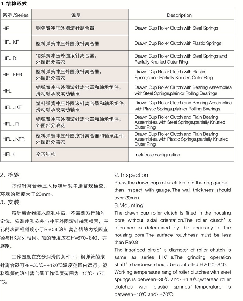 可提供樣本樣品中所列標(biāo)準(zhǔn)和非標(biāo)準(zhǔn)公制尺寸。英制系列沖壓外圈滾針軸承以及外圈有油孔,雙列滾針、 尼龍保持架,有內(nèi)圈、有密封圈等有特殊要求(訂貨時有特殊技術(shù)要求)高精度的沖壓外圈滾針軸承。